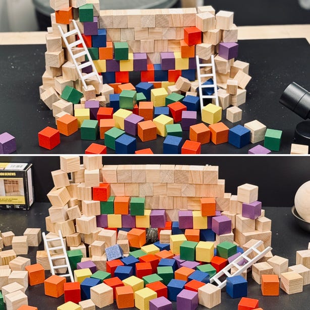 For me, this process often feels like I’m building a wall between myself and what I know. I build the wall with colorful blocks that represent ideas, frameworks, thoughts, thought forms, limiting beliefs, etc., all disguised as necessary structures for my own good. I then place ladders at different locations of the wall and go to work climbing over it.